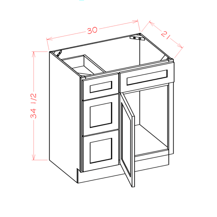 Shaker Antique White Vanity Combo Base Cabinet with Drawers Left